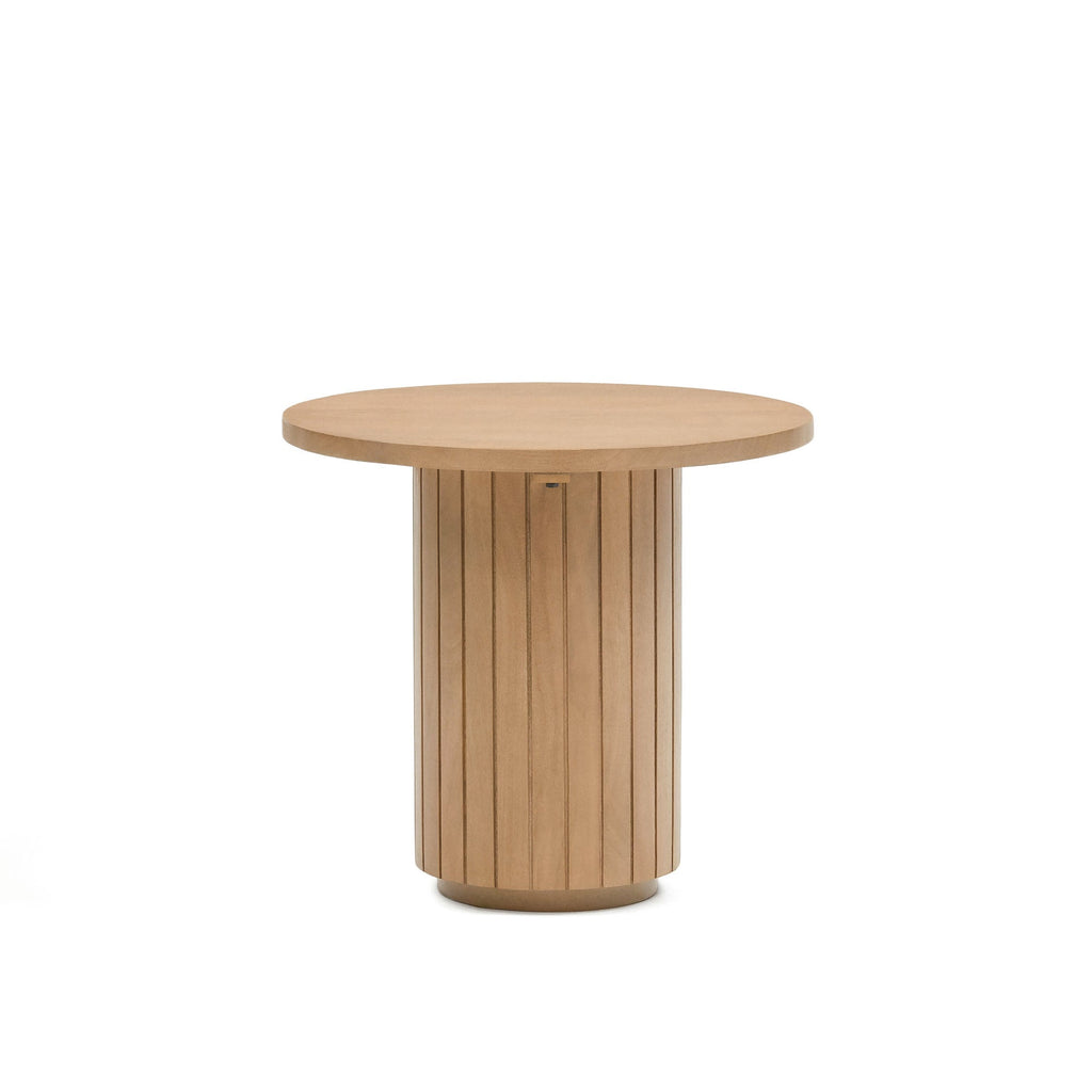 Licia round side table 60cm is made from solid mango wood with a natural finish. Licia is an artisanal design made from pieces of solid sustainable mango wood, set individually to create the rounded forms. A trend that brings movement and fluidity to your interiors.